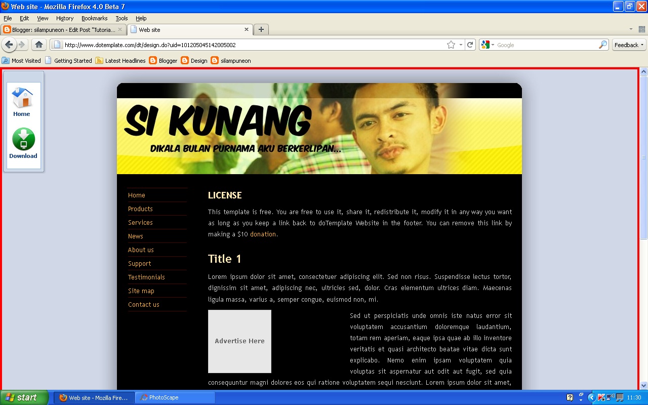 - Tak perlu main dengan coding html ! Dah siap buat kat DoTemplate, terus upload di blogspot
